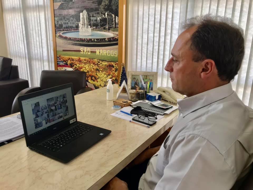 O prefeito Evandro Kuwer participou do encontro online, organizado pela ‘Frente dos Municípios do RS pela Vacina’, para assinatura do Termo Operacional para futura aquisição de vacinas contra a Covid-19 para o município de São Marcos.