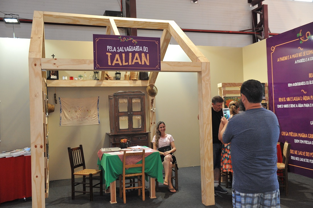 Os visitantes também encontram no estande parte da história da Associação Cultural Miseri Coloni, que é um grupo fundado em 1980 para resgatar, preservar e cultivar as tradições dos imigrantes italianos, por meio de atividades artísticas, principalmente, o teatro. Um dos fundadores do Miseri Coloni e integrante do Conselho Estadual de Cultura e do Colegiado Setorial de Diversidade Linguística do Estado, João Tonus, ressalta que o apoio da Festa ao espaço e a escolha do tema vão ao encontro do que defendem: manter o Talian vivo. “Vendemos a ideia de que o Talian tem que ficar vivo. Nós defendemos que o idioma seja reconhecido e ensinado às crianças e a comunidade tem o direito de decidir manter as línguas maternas. Se a população abraçar o ensino é uma maneira de valorizar a cultura italiana e manter a tradição”, defende.