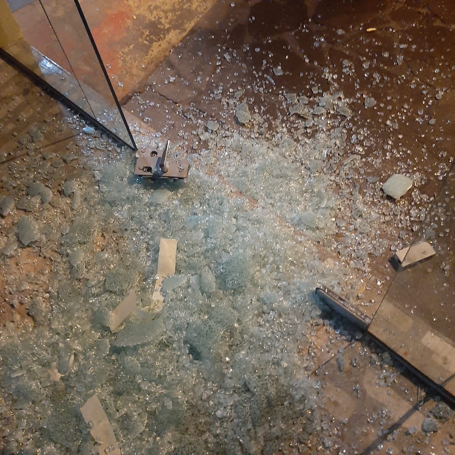 Além de quebrar uma porta de vidro, o meliante também estragou as fechaduras de outra porta, por onde não conseguiu entrar.