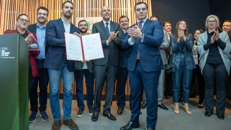 O governador Eduardo Leite assinou, na noite desta sexta-feira (7/7), no Palácio Piratini, o contrato de venda e a transferência da Companhia Riograndense de Saneamento (Corsan) para o grupo Aegea. A assinatura conclui o processo de privatização da companhia, arrematada em leilão em dezembro do ano passado por R$ 4,151 bilhões.