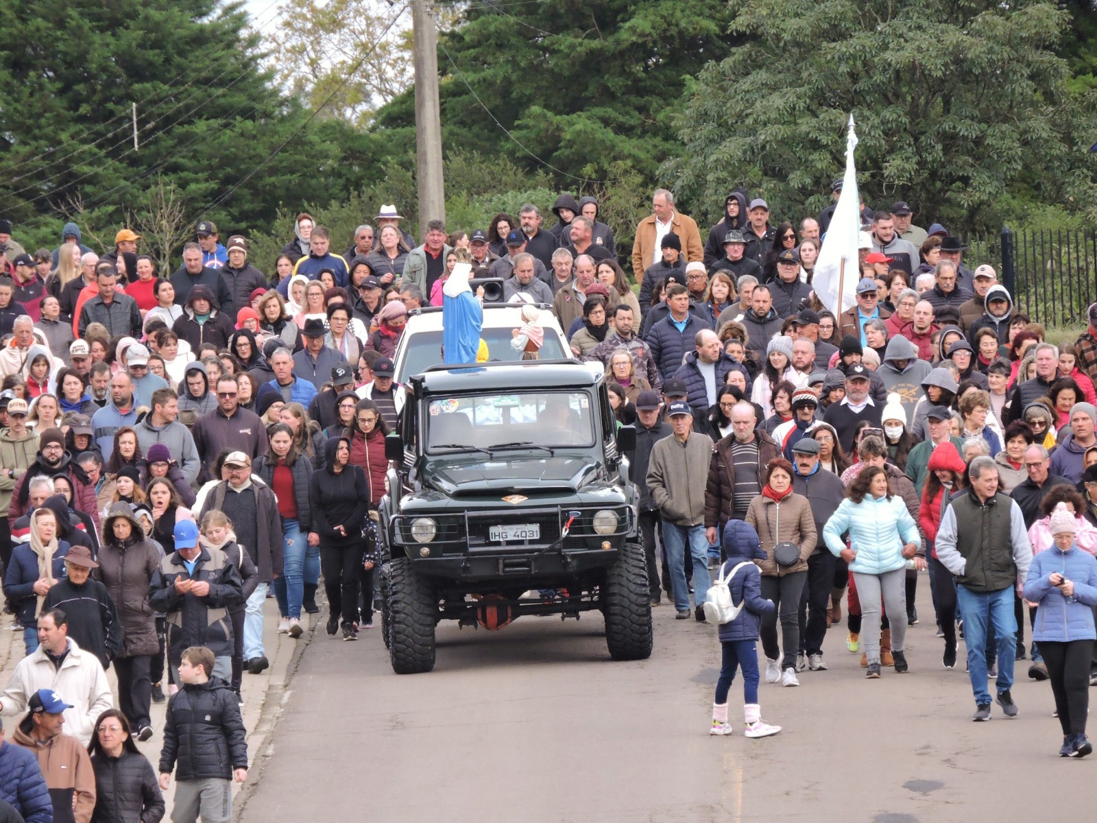No sábado à tarde, cerca de 300 fiéis participaram da procissão motorizada, que incluiu jipeiros, motociclistas e ciclistas. A comitiva partiu da Rua Osvaldo Aranha, em frente à Igreja Matriz, e percorreu as ruas da cidade até chegar à capela na Linha Tuiuti, onde foram recebidos com bençãos.