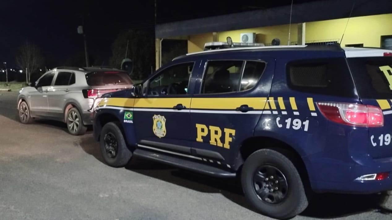 Na madrugada desta quarta-feira (28), a Polícia Rodoviária Federal prendeu dois criminosos em Vacaria e recuperou um automóvel T-Cross que havia sido roubado à mão armada na cidade de Alvorada. O veículo circulava com placas clonadas.