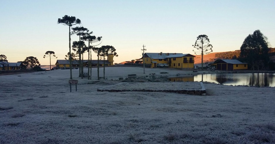 Na Serra do Sudeste, nas áreas de Pedras Altas e Pinheiro Machado, alguns pontos devem seguir com marcas ao redor de 0ºC ou negativas hoje e amanhã com geada.
