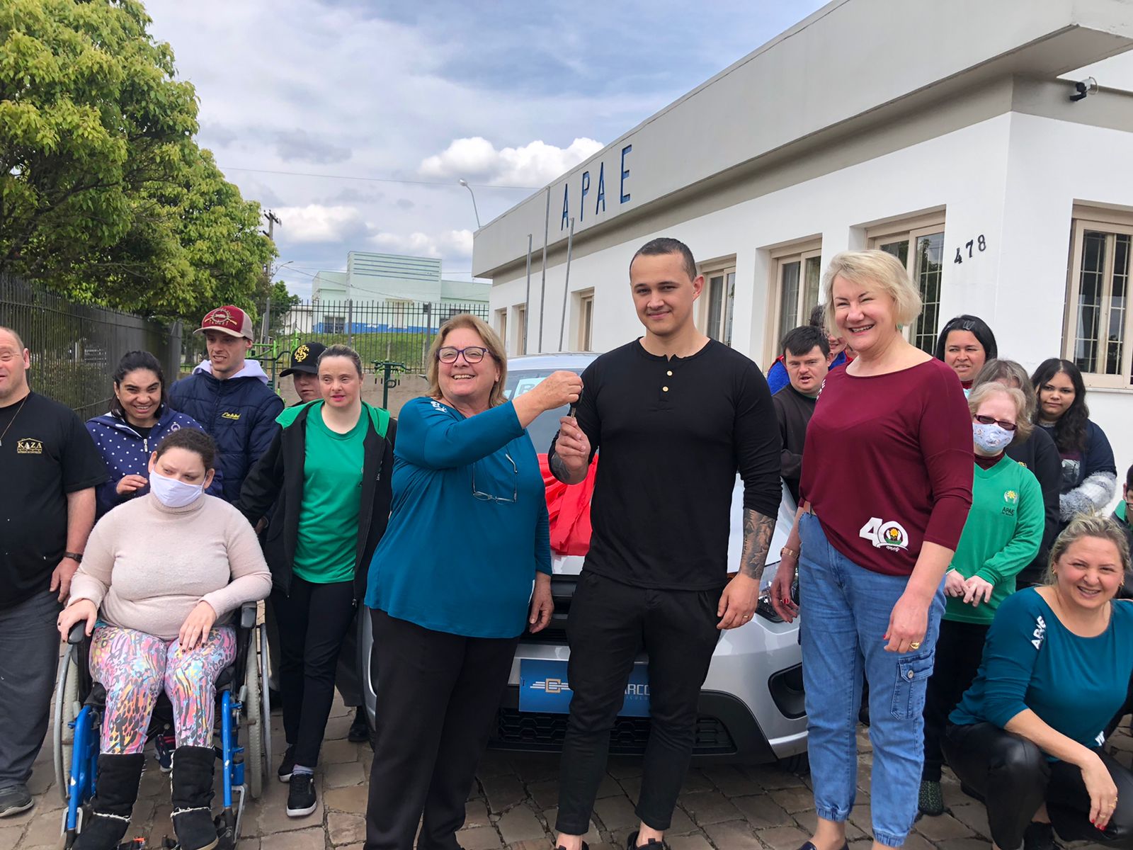 Tiago Klein recebeu as chaves do Fiat/Mobi das mãos da presidente da entidade. Veículo está avaliado em cerca de R$ 60 mil reais