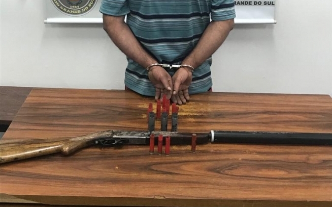 A arma de fogo, uma sacola com quatro munições do mesmo calibre e diversos estojos de calibres 12, 32 e 36 foram localizados e apreendidos. O homem foi conduzido a Delegacia de Polícia de Vacaria para o auto de prisão em flagrante. A vítima não teve ferimentos.