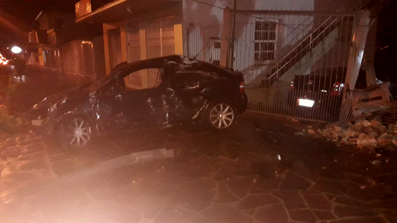 Condutor teria perdido o controle do veículo e colidido nas grades de duas moradias na Av. Venâncio Aires