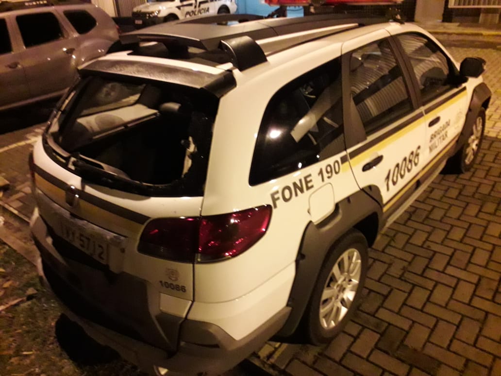 Homem foi preso após quebrar vidro da viatura neste sábado