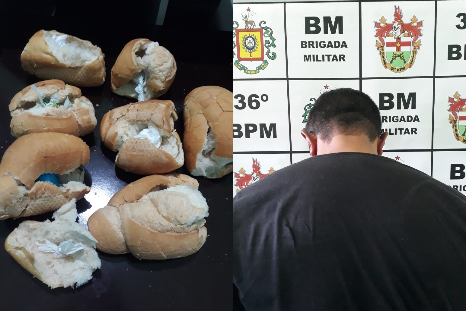 Com ele os policias encontraram 35,5 gramas de entorpecentes, acondicionados dentro de pães ocos. A equipe de inteligência do 36º BPM se deslocou em apoio à ocorrência. “Xuxa” foi preso e encaminhado à DPPA em Caxias do Sul.