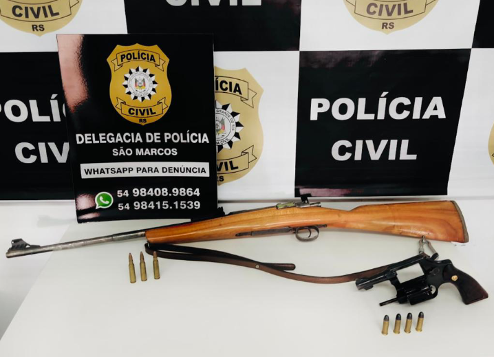 Na tarde desta sexta-feira (28) a Polícia Civil de São Marcos prendeu um homem pelo delito de posse irregular de arma de fogo de uso restrito. A ação se deu após investigações e resultou na prisão de um homem de 45 anos no interior de Caxias do Sul, no distrito de Fazenda Souza.