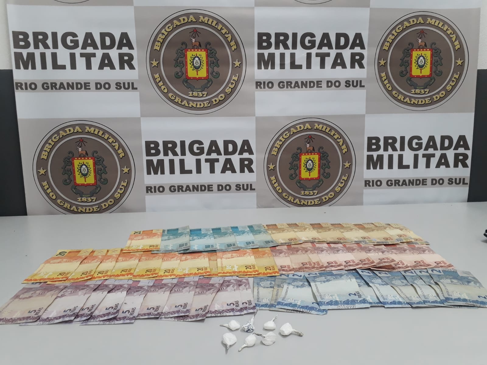 Indivíduo foi abordado na frente de uma boate no bairro São José e com ele foram encontrados 7 porções de cocaína e R$1.240 em dinheiro Por volta das 22h desta quinta-feira (15), a Brigada Militar prendeu um homem de 37 anos por tráfico de drogas na Rua das Castanheiras – Bairro São José.