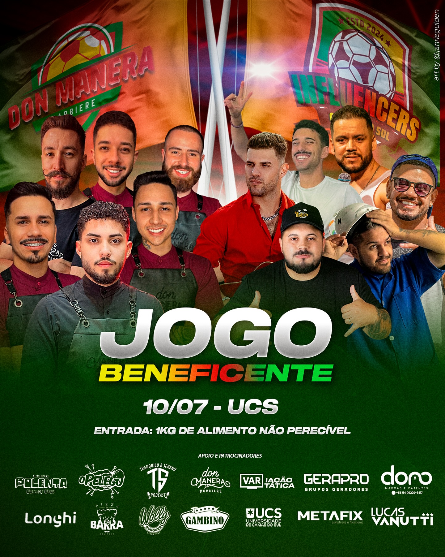 Nesta quarta-feira, a partir das 19h, o ginásio poliesportivo da UCS será palco de um emocionante jogo beneficente em Caxias do Sul, organizado por influencers locais para arrecadar donativos em prol das vítimas das enchentes que atingiram o Rio Grande do Sul recentemente.
