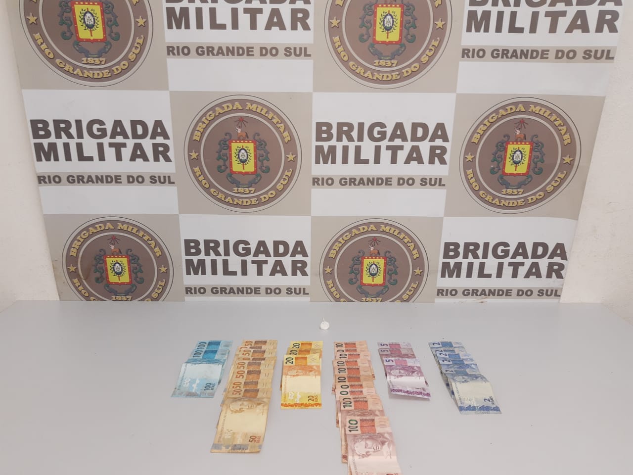 No interior da casa que encontrava-se com a porta da frente aberta, foi efetuada a abordagem do homem de 20 anos, com o qual foi localizado R$805,00 em dinheiro e informou que não havia mais drogas.