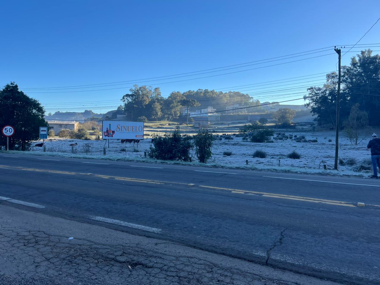 No interior, outra vez a esmagadora maioria dos municípios registra marcas ao amanhecer em torno de 0ºC ou negativas. Na região de Ausentes, marcas de até -6ºC ou -7ºC. Geada generalizada e forte.