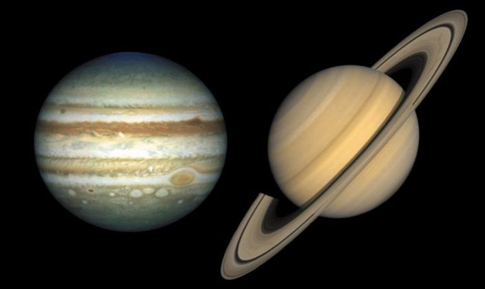Júpiter e Saturno se “encontrarão” no céu na noite desta segunda-feira, parecendo mais próximos um do outro como não se vê desde a época de Galileu no século 17. Os astrônomos dizem que as chamadas conjunções entre os dois maiores planetas do nosso sistema solar não são particularmente raras. Júpiter ultrapassa seu vizinho Saturno em suas respectivas voltas ao redor do Sol a cada 20 anos.