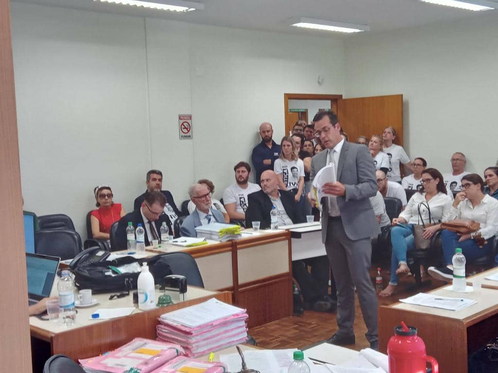 “Hoje de manhã foram julgadas as apelações manejadas por todas as partes do julgamento que foi realizado em 2023, no qual foram condenados o Leandro Renon e o Fábio Júnior por serem os autores do homicídio duplamente qualificado, essa foi a condenação, inclusive, do Ivosmar Cardoso. Bom, hoje foram julgadas as apelações para a primeira câmara criminal, na primeira hora da manhã às 9 horas, e o tribunal manteve integralmente os termos do julgamento ocorrido em São Marcos, inclusive as penas aplicadas, e por conta disso determinou imediatamente a expedição dos mandados de prisão para que os condenados já comecem a cumprir, pelo menos de forma provisória, as defesas, em tese, ainda podem recorrer dessa decisão, assim como nós da assistência ao Ministério Público, mas para que eles já possam começar a cumprir de forma provisória a pena que foi imposta em São Marcos.”