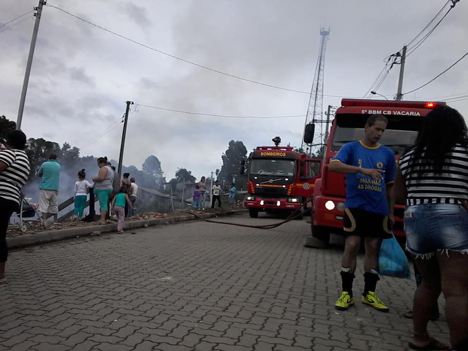Os bombeiros de Vacaria se deslocaram e conseguiram evitar que a 4ª residência fosse também tomada pelas chamas.