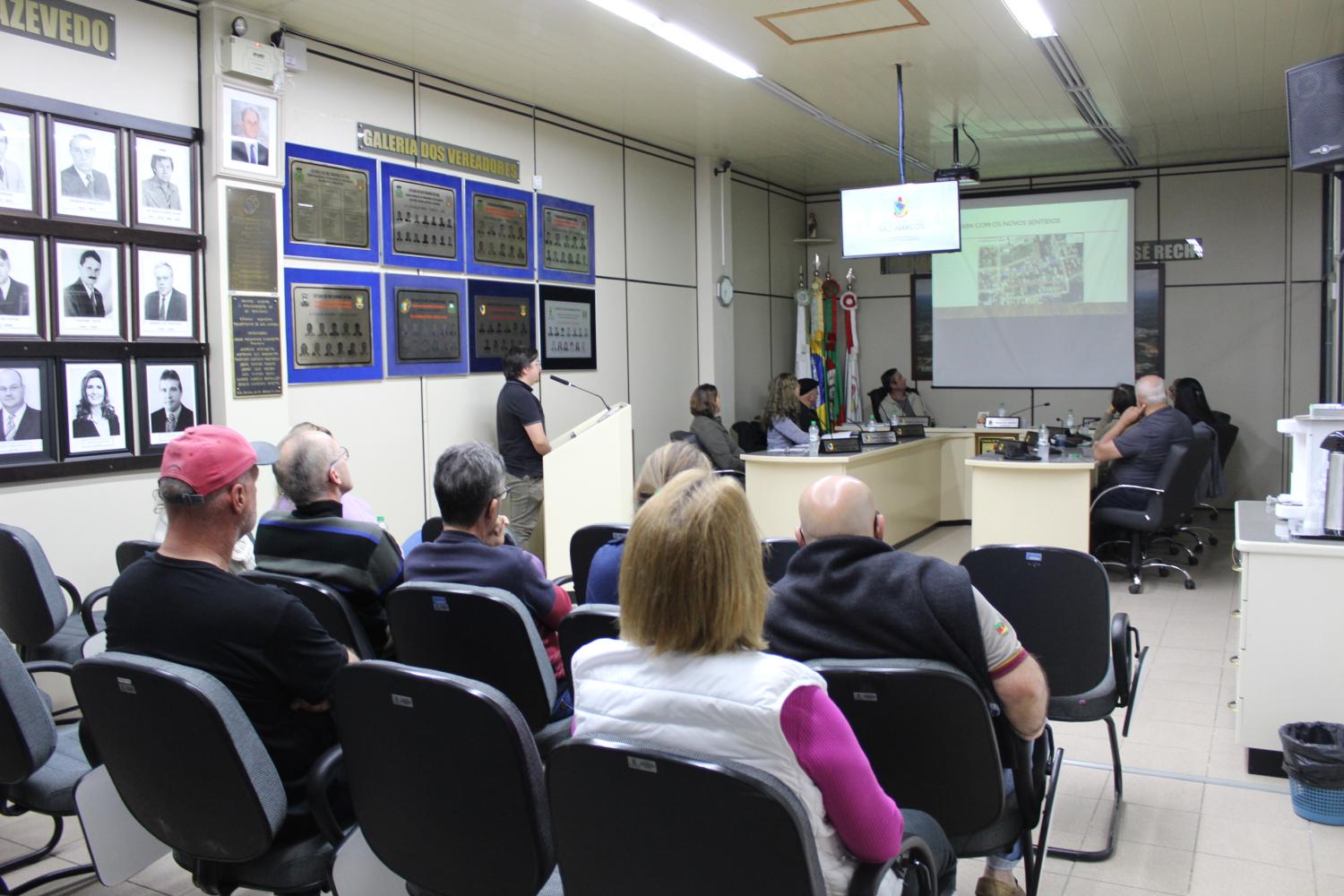 O Projeto de Lei, que visa tornar a Rua Canelones de mão única no sentido da Rua Domingos Garbin para a Rua Augusto Catafesta e a Rua Luiz Debovi de mão única no sentido da Rua Augusto Catafesta para a Rua Domingos Garbin, foi detalhadamente apresentado durante a audiência. A Assessora Jurídica, Bruna Canale, e o engenheiro Pablo Correa, representando o Poder Executivo, explicaram como o trânsito seria reorganizado caso a proposta fosse aprovada.