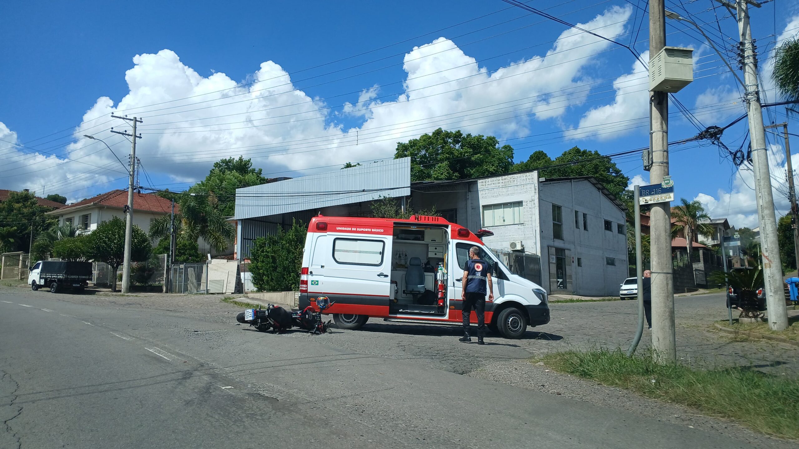 Um acidente envolvendo uma motocicleta e um caminhão da Prefeitura de São Marcos deixou um homem de 34 anos ferido na tarde desta segunda-feira (6). A colisão ocorreu por volta das 14h, no cruzamento da Rua Luis Sogari com a BR-116, no bairro Polo.