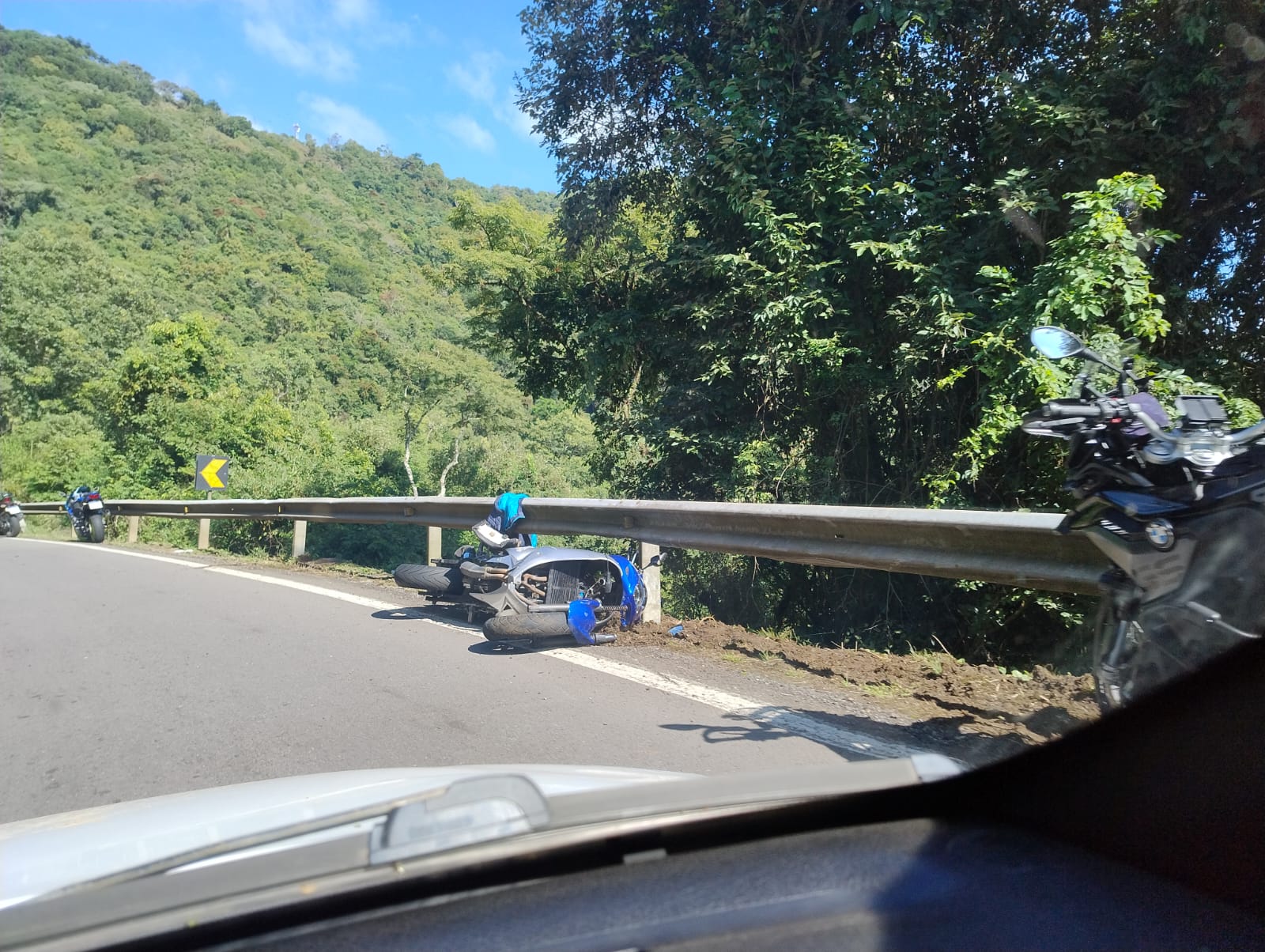 Na manhã deste domingo (30), um motociclista de 55 anos ficou ferido após perder o controle e cair na BR-116, em um trecho próximo à ponte do Rio das Antas, em São Marcos.