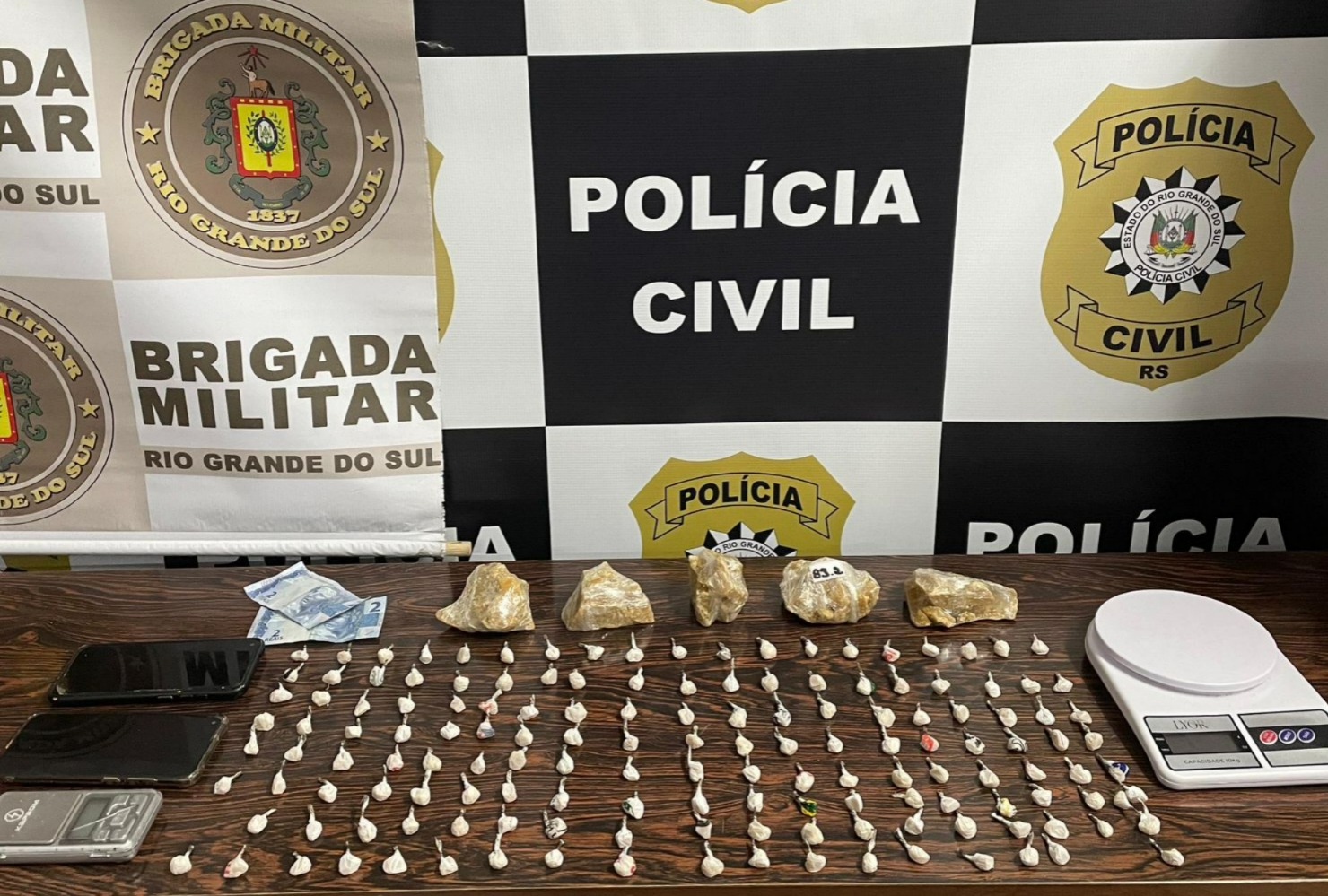 Brigada Militar e Policia Civil também apreenderam cerca de 500 gramas de crack, balanças e celulares.