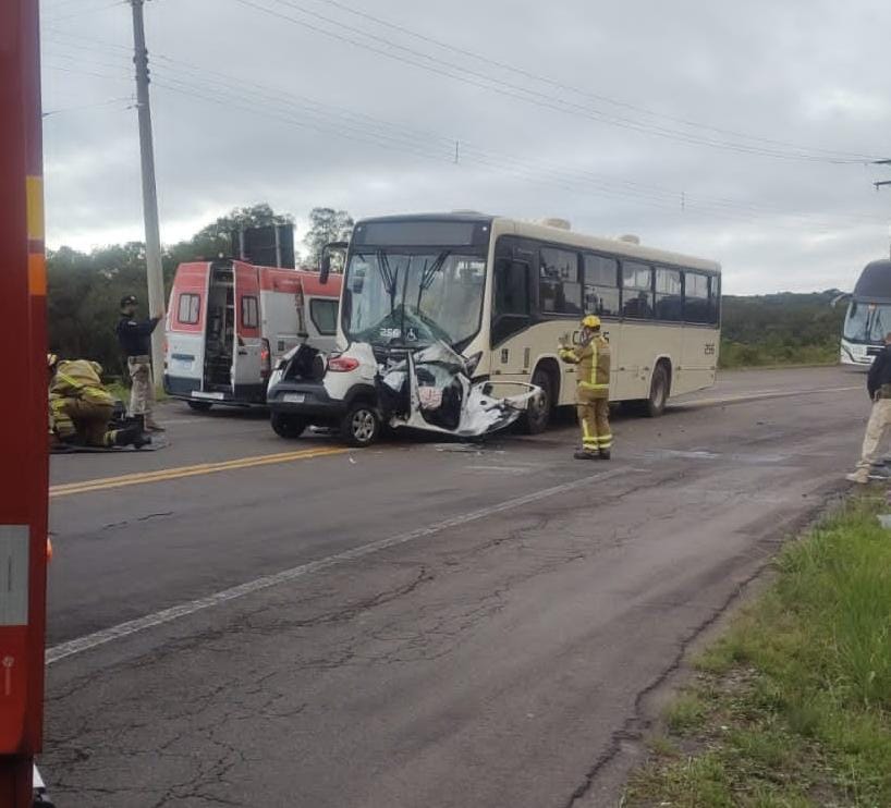 De acordo com a Polícia Rodoviária Federal (PRF), a condutora do Renault Kwid, uma mulher de 34 anos, seguia em direção a São Marcos quando invadiu a pista contrária, perdeu o controle do veículo em uma curva e bateu no ônibus que fazia a linha 52 Parada Cristal/Santa Bárbara/JBS/Marcopolo.