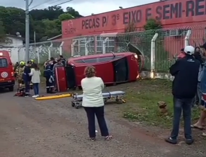 O veículo era ocupado por dois adultos e uma criança sendo que uma mulher de 45 anos, ficou presa dentro do veículo, ela apresentava ferimentos leves e foi encaminhada pelo SAMU ao hospital. As outras duas vítimas, um homem e uma criança, haviam sido socorridas por populares e não apresentavam ferimentos graves.