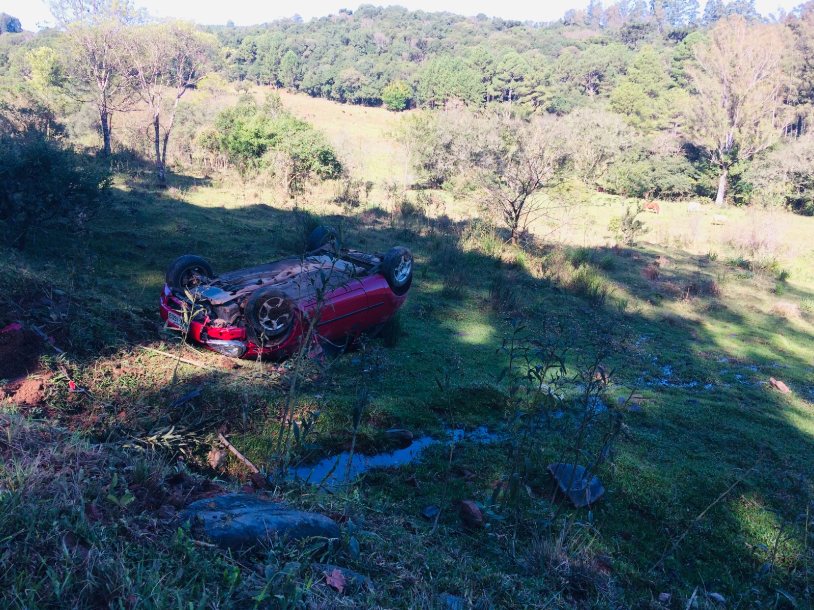 Ford Ka saiu da pista e parou há cerca de 4 metros abaixo da via Mulheres ficaram feridas em acidente após um carro sair da pista e capotar em Santo Henrique, no interior de São Marcos.