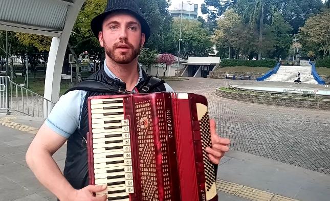 “Minha paixão pela música é desde criança, desde a minha infância, sempre adorava ir ao CTG, principalmente em rodeios só para ver o gaiteiro tocar. Aos 14 anos eu resolvi entrar nessa ‘lida’, aprendi fácil sabe, desde a primeira aula já começei a tirar música e fui cada vez mais evoluindo, é uma grande honra Deus me possibilitar esse dom”, comentou o músico em conversa, após ser abordado pela reportagem na Praça Dante Marcucci.