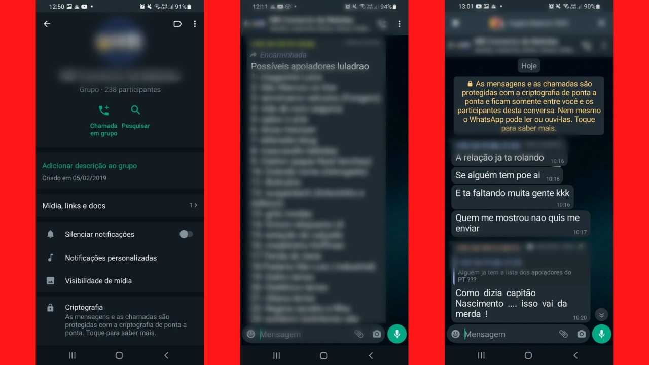 Nas mensagens vazas e que chegar até o SMO, um dos administradores de um dos grupos ainda pede para que os demais membros complementem a lista pois, conforme ele “tá faltando muita gente”. Outro membro complemente “isso vai da merda”. Só esse grupo conta com 238 participantes. A mesma lista está sendo espalhada em diversos outros grupos e já é de conhecimento da maioria dos moradores com acesso a internet.