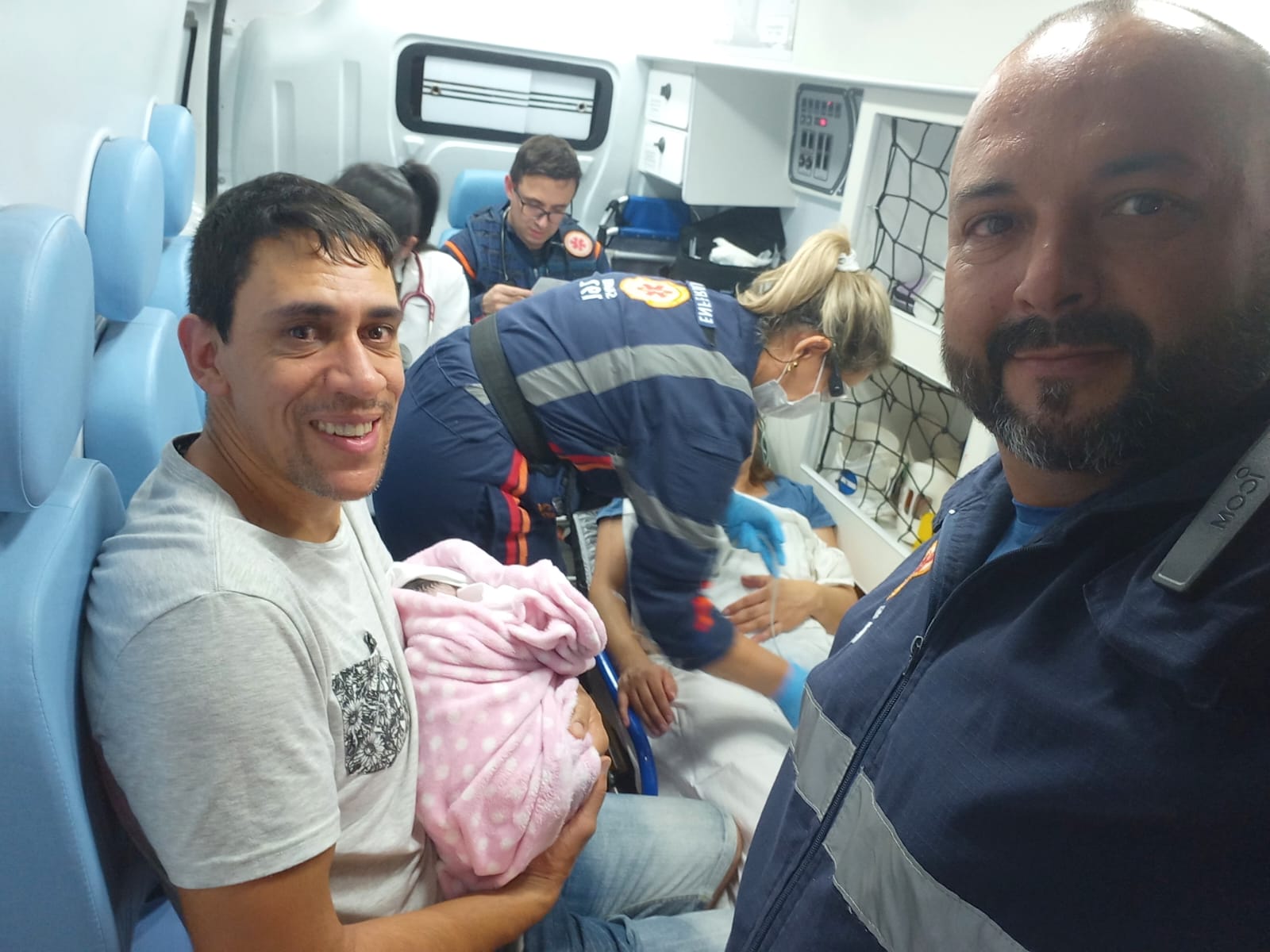 “Quando encontramos o SAMU de Caxias, o enfermeiro disse, não, não, vai ter que ser na ambulância mesmo, porque não vai dar tempo de chegar em hospital nenhum. Ele fez o parto e levou a gente até no Pompéia.”, destaca o pai.