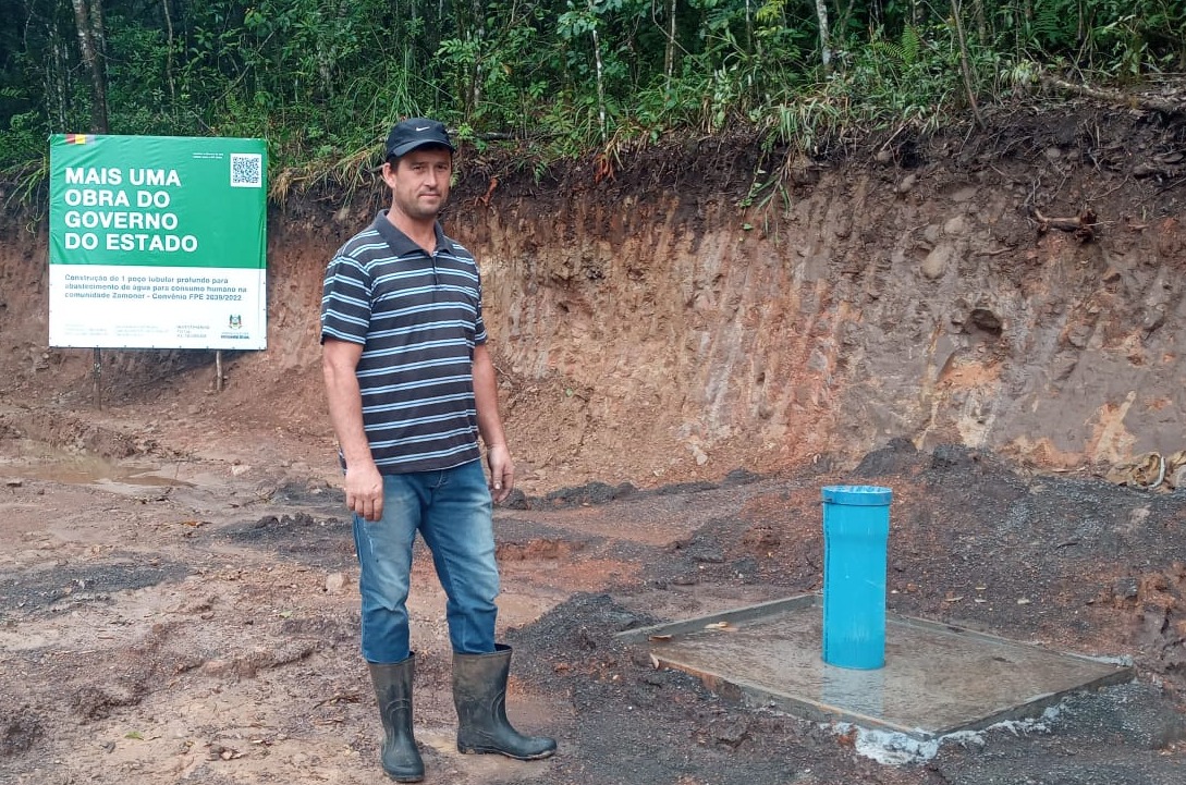 O poço artesiano de Zamoner está perfurado, atinge 210 metros de profundidade. Rasador mora a 500 metros do poço, mas a rede de distribuição vai se estender por um raio de 1,5 km até atingir toda a vizinhança.