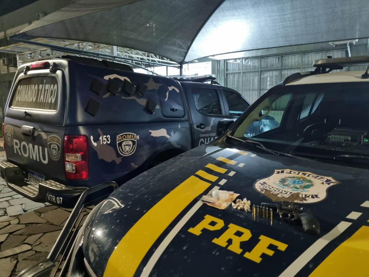 A Polícia Rodoviária Federal e Guarda Municipal em Vacaria prenderam dois homens na madrugada desta quarta-feira (21), numa ação que ocorreu na BR 285. Eles transportavam um revólver e 28 pedras de crack.