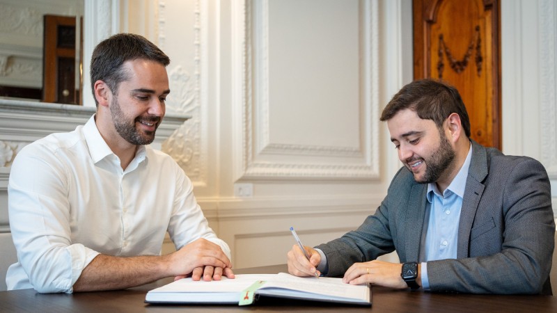 Pela primeira vez desde o início do atual mandato, o governador Eduardo Leite passou o cargo para o vice-governador, Gabriel Souza. O ato de transmissão foi assinado neste sábado (14/1), no Palácio Piratini, antes do embarque de Leite para o Fórum Econômico Mundial em Davos, na Suíça.
