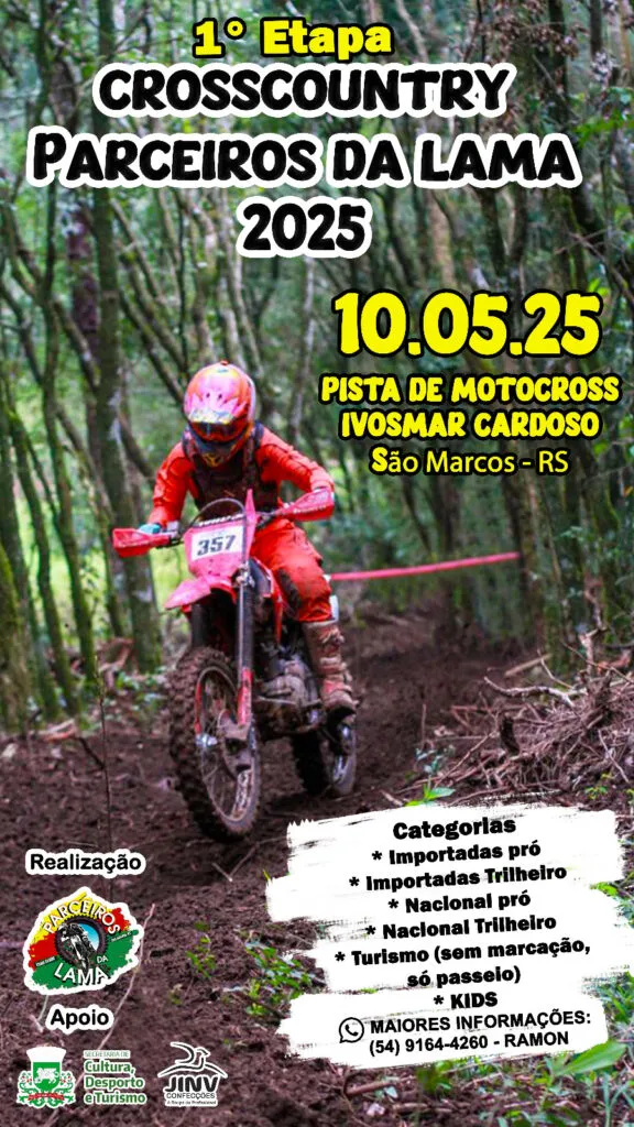 No próximo dia 10 de maio, na pista de motocross de São Marcos, acontece a 1ª etapa do CrossCountry Parceiros da Lama.