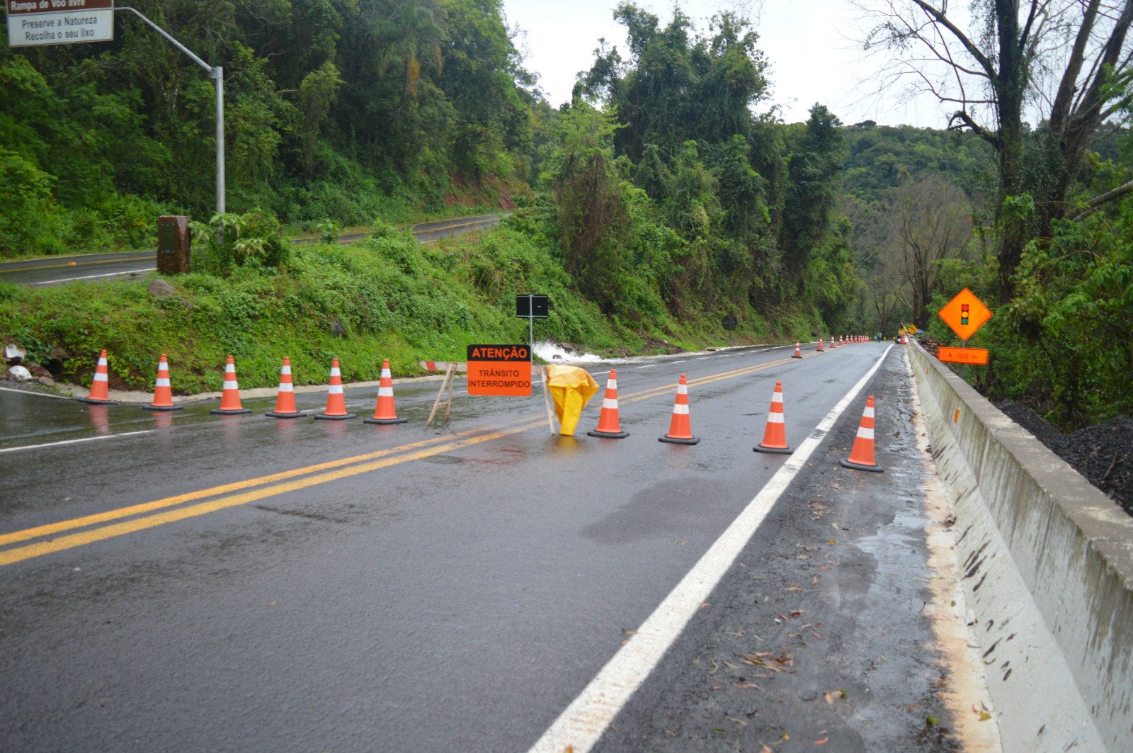 O trecho está interrompido nos dois sentidos e não há previsão de liberação Devido às fortes chuvas ocorridas nesta segunda-feira, houve diversas quedas de árvores e barreiras durante todo trecho que está em obras entre Caxias do Sul e Nova Petrópolis.