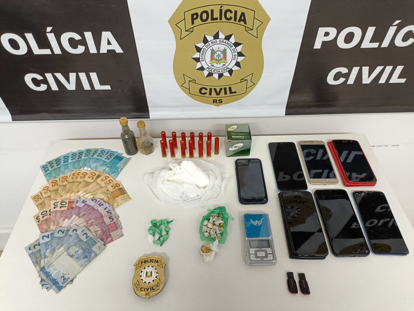 Após extenso trabalho de investigação do te o tráfico de drogas e outros crimes, na noite desta sexta-feira a Polícia Civil de São Marcos prendeu dois indivíduos pelos crimes de tráfico de drogas, associação para o tráfico, corrupção de menores e posse irregular de arma de fogo de uso permitido.