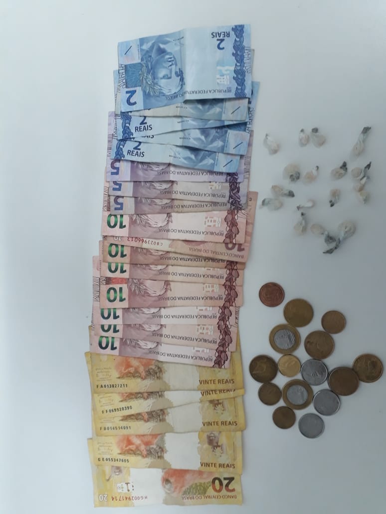 Na ocasião foi cumprido mandado de busca e apreensão na residência do suspeito, sendo apreendidas 17 pedras de crack embaladas para venda e R$ 210,00.