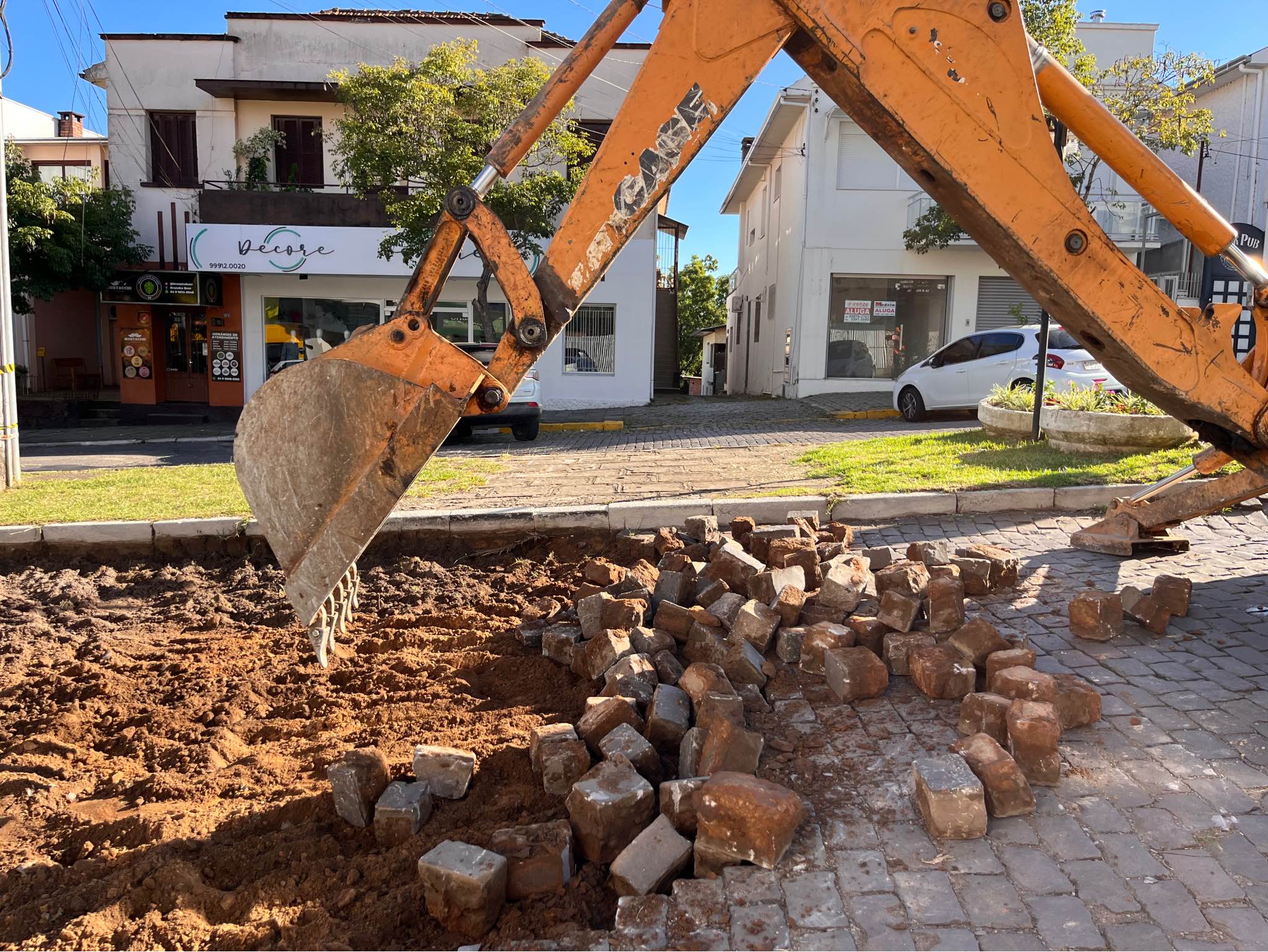 Iniciaram hoje as obras de asfaltamento do novo trecho da Avenida Venâncio Aires, em São Marcos. O trânsito está interrompido desde cedo e as máquinas da prefeitura fazem a retirada do antigo calçamento, de paralelepípedos, entre as ruas Dr. Rosa e Monsenhor Henrique Compagnoni (trecho compreendido entre as lojas Estação do Calçado e Galli), nos dois sentidos.