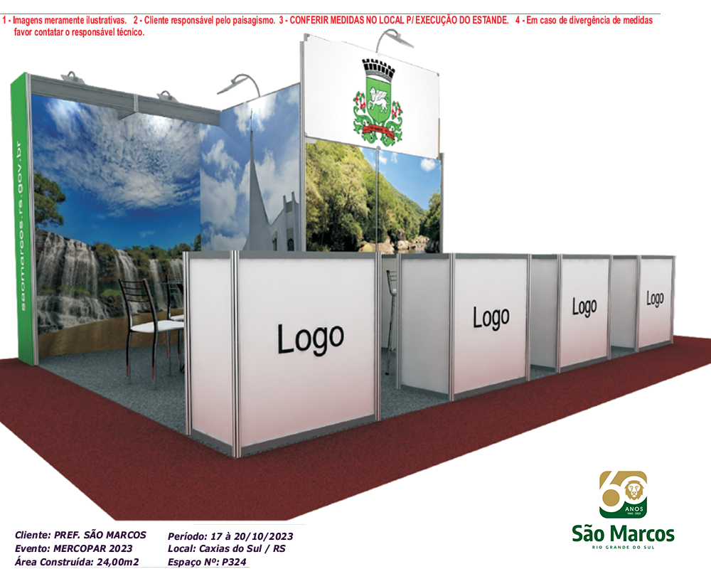 Assim, a Prefeitura vai subsidiar um estande no pavilhão 2, local onde também estarão situadas prefeituras da região, como Caxias do Sul, Farroupilha e Flores da Cunha. O espaço terá 24m² e poderá ser dividido por até quatro empresas. A prefeitura custeará o espaço na feira e também a montagem básica padrão ofertada pelo SEBRAE. A adesivagem, locação de mobília e fornecimento de materiais para exposição ficará a cargo de cada empresa e deverá ser padronizada entre as participantes.