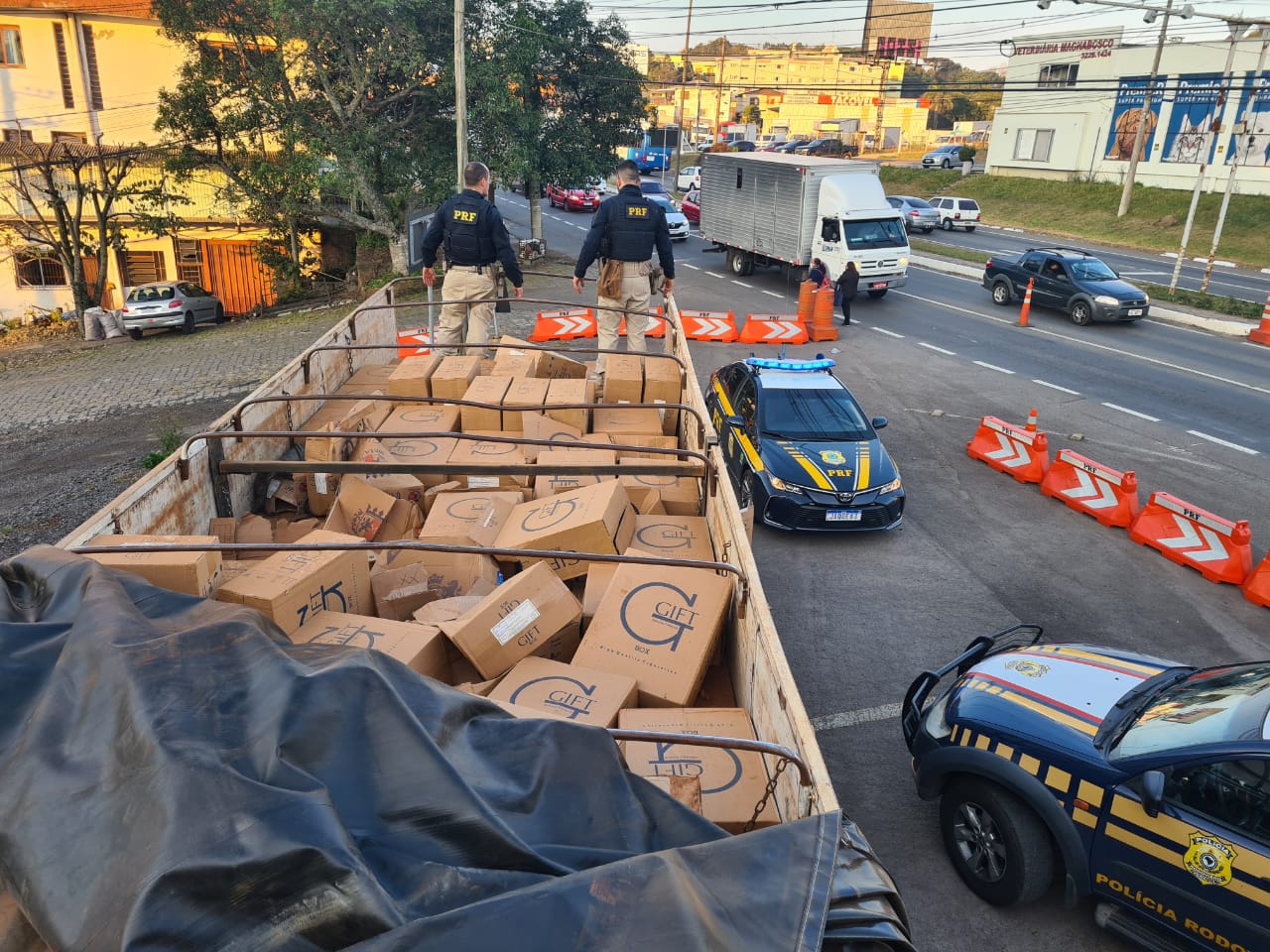 PRF apreende mais de 150 mil maços de cigarros contrabandeados em Caxias do Sul