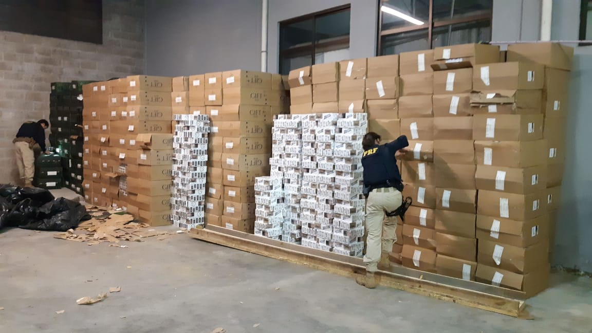 Na noite desta quarta-feira (17), a Polícia Rodoviária Federal apreendeu cerca de 375.000 maços de cigarros contrabandeados em um galpão clandestino na cidade de Caxias do Sul. Cinco pessoas foram presas nessa operação que foi deflagrada com apoio do serviço de inteligência do órgão.