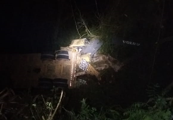 Caminhão com família de São Marcos caiu em ribanceira. Homem de 52 anos morreu no local. Trânsito está interrompido