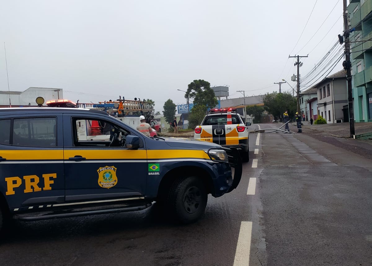 Um poste do canteiro central caiu sobre a via após ser atingido por um veículo A PRF informa que o trânsito está parcialmente bloqueado na BR 116, no km 148, em frente à Sponchiado, no sentido Ana Rech – Galópolis, devido a um poste do canteiro central caído sobre a via.