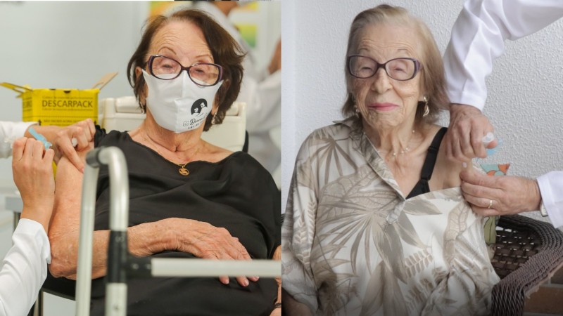 Primeira idosa vacinada contra o coronavírus no Estado recebe a dose do imunizante bivalente