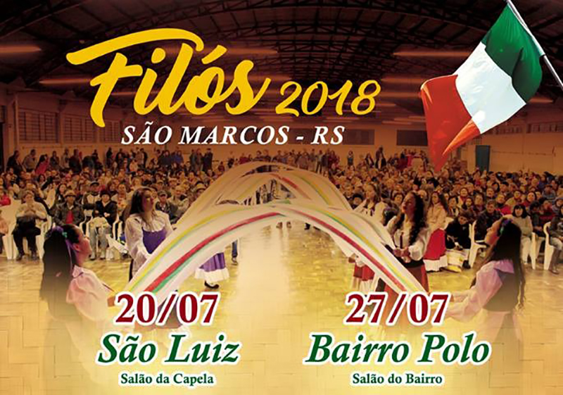 O segundo filó acontecerá na próxima sexta-feira, 27 de julho no Salão do bairro Polo com as seguinte atrações: Grupo teatral Art’Manhas, Grupo de danças italianas da Escola Municipal Francisco Doncatto – Projeto da Secretaria Municipal de Educação elaborado pela professora Angélica Bertelli e Banda Flor da Serra.
