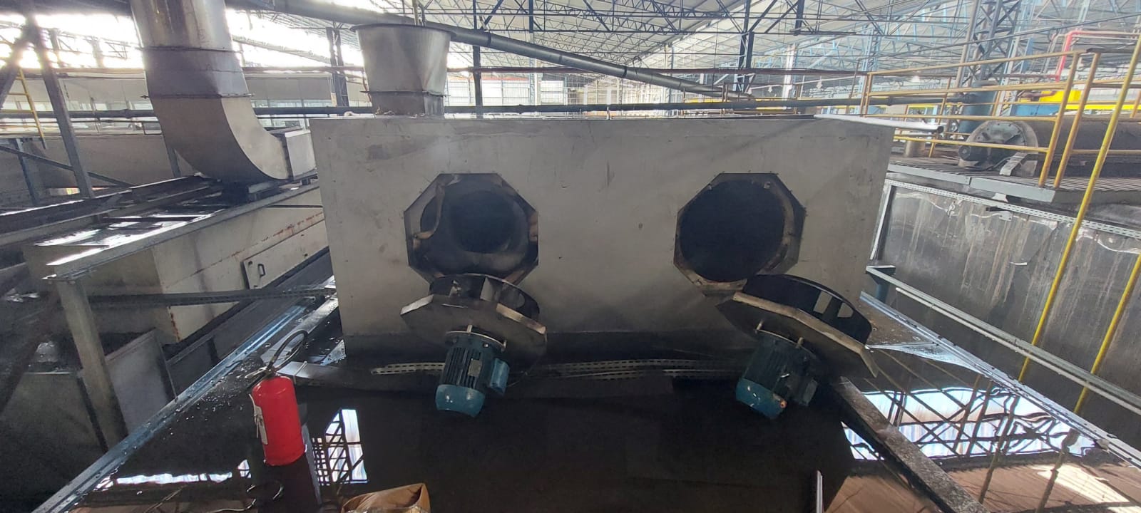 Os danos patrimoniais foram registrados na parte superior e interna da estufa de cura, que é utilizada para pintura líquida, afetando o motor, lâminas de vidro, instalação elétrica e outros elementos estruturais.