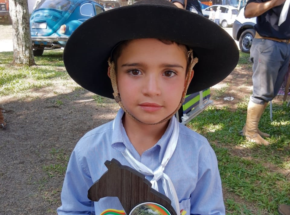 Felipe dos Reis tem apenas 6 anos, mas já pode ser considerado um dos melhores laçadores mirins do Sul do Brasil. Além de colecionar troféus e medalhas nas competições regionais e torneios de laço nas cidades vizinhas, o menino prodígio do laço ficou em 4º lugar na “Copa do Mundo dos Rodeios”, como é conhecido no meio tradicionalista o Rodeio de Vacaria.
