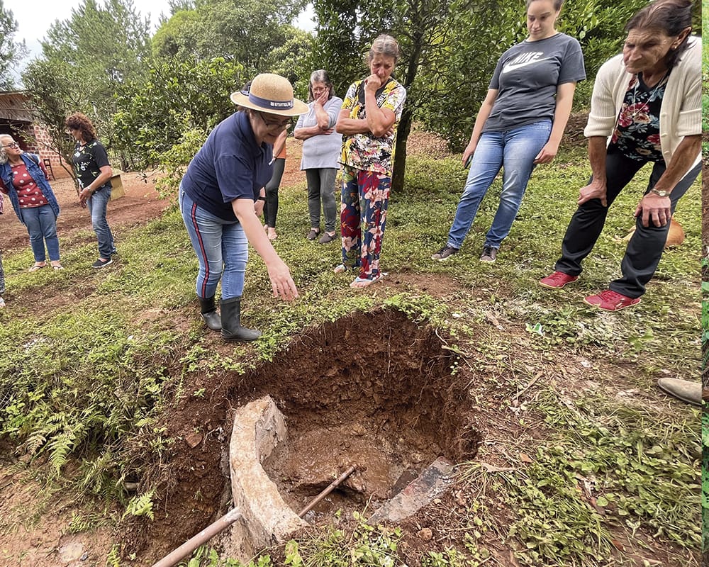 Com a participação de cerca de 15 pessoas, agricultores puderam esclarecer dúvidas e compartilhar experiências sobre o processo de instalação de um sistema para proteção da nascente de água na propriedade dos Gazziero, localizada na linha Riachuelo. Durante o Dia de Campo, a extensionista rural da Emater, Ines Pilatti, e o secretário do Meio Ambiente, Fabiano Varela, forneceram informações detalhadas sobre o projeto.
