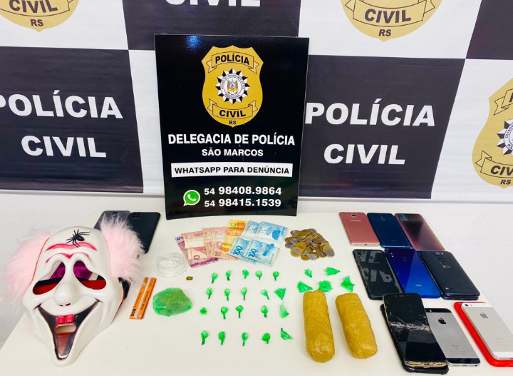 Na manhã desta quarta-feira a a Polícia Civil de São Marcos prendeu quatro pessoas após investigações relacionadas aos crimes de tráfico de drogas, associação para o tráfico e organização criminosa. Na ocasião foram presos dois homens de 18 e 19 anos e duas mulheres de 23 e 38 anos.