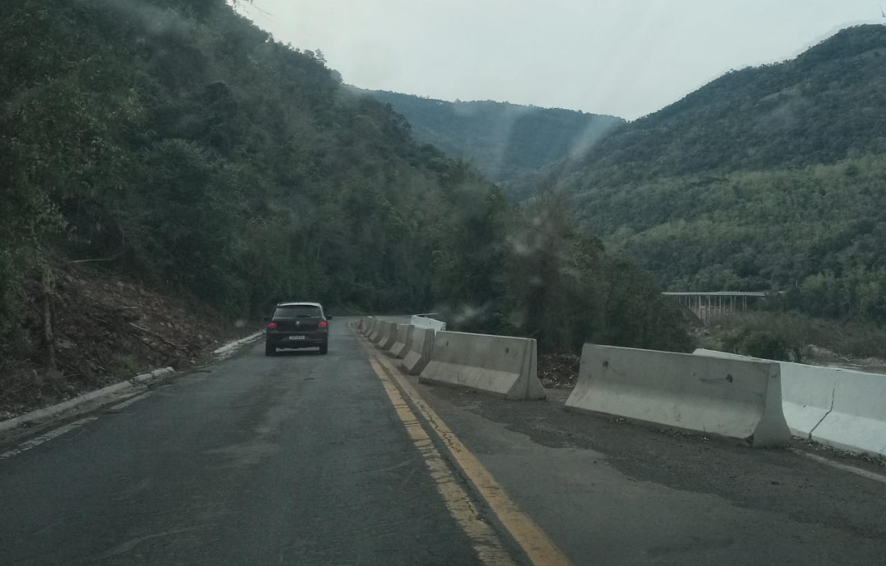 Trecho da BR-116, no km 96, próximo à ponte sobre o Rio das Antas, ainda opera de forma precária. Previsão é de que os serviços iniciem até o fim de setembro